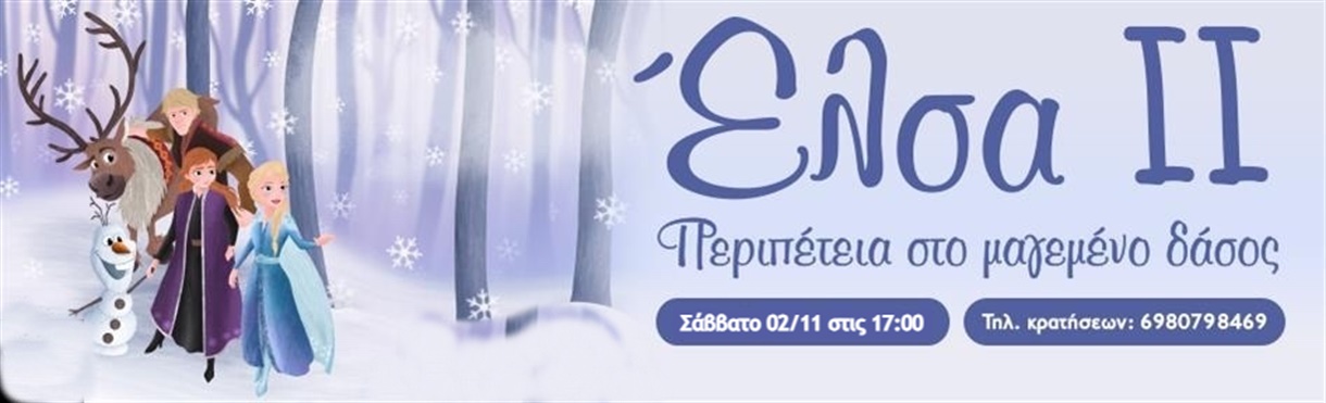 Μια επική περιπέτεια με πρωταγωνιστές την Έλσα, την Άννα, τον χιονάνθρωπο Όλαφ και τον τάρανδο Σβεν, έρχεται το Σάββατο 02/11 στις 17:00 στο Θέατρο Πάνθεον ( ΠΑΤΡΑ)