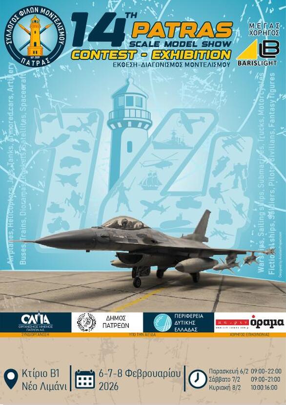 Ο Σύλλογος Φίλων Μοντελισμού Πάτρας (ΠΑ.ΣΥ.ΦΙ.ΜΟΝ.) ανακοινώνει με ιδιαίτερη χαρά τη διοργάνωση της 14ης Έκθεσης & Διαγωνισμού Στατικού Μοντελισμού Patras Scale Model Show – Baris Light.