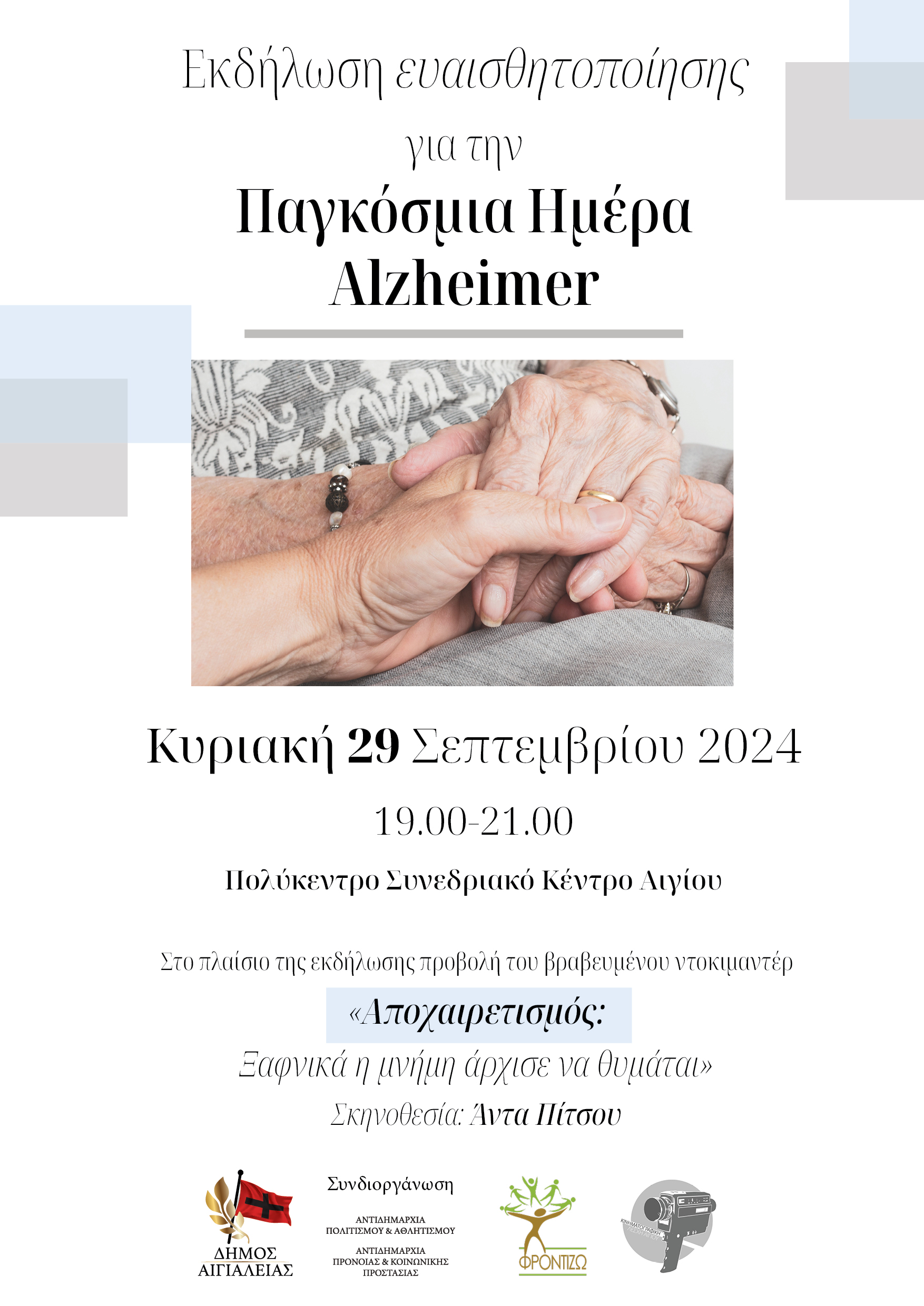 Εκδήλωση την Κυριακή 29 Σεπτεμβρίου στο Αίγιο αφιερωμένη στην Παγκόσμια Ημέρα Alzheimer 2024