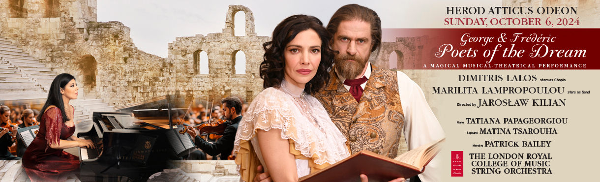 Ο μεγάλος ερωτάς των Chopin και Σάνδη θα ζωντανέψει μέσα από αυθεντικές επιστολές και κείμενα, με πρωταγωνιστές τον αγαπημένο ηθοποιό Δημήτρη Λάλο και την λαμπερή πρωταγωνίστρια Μαριλίτα Λαμπροπούλου, σε σκηνοθεσία του διακεκριμένου Πολωνού συνθέτη Jarosław Kilian. Μουσικά θα μας ταξιδέψει σε μερικές από τις ομορφότερες μελωδίες του ρομαντισμού η πιανίστα Τατιάνα Παπαγεωργιου που θα συμπράξει με την Ορχήστρα Εγχόρδων του Βασιλικού Κολεγίου Μουσικής του Λονδίνου, υπό την διεύθυνση του μαέστρου Patrick Bailey, επί σκηνής η ταλαντούχα και βραβευμένη σοπράνο Ματίνα Τσαρουχά.