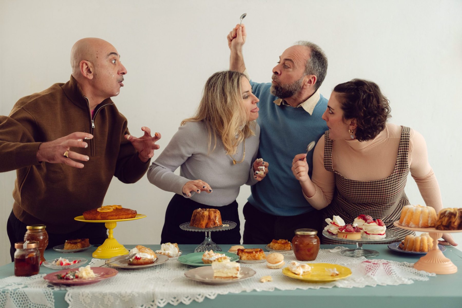 Ανάμεσα σε ατελείωτα πολύχρωμα γλυκά, σε κάποιο νησί του Αιγαίου, δίπλα στη θάλασσα, ξεκινούν οι ιστορίες τους. Μία σερβιτόρα αποφασίζει να κάνει μια τρέλα: να παρακολουθήσει κρυφά έναν άγνωστο που ερωτεύτηκε κεραυνοβόλα. Μία γυναίκα ανοίγεται για πρώτη φορά με τόση ειλικρίνεια στον άντρα της. Ένας μοναχικός νεαρός στήνει αυτί και αφουγκράζεται την παράξενη κολυμβήτρια που κολυμπάει κάθε νύχτα στη σκοτεινή θάλασσα. Ένας ανήσυχος στρατιωτικός ερευνά την ιστορία μίας σπάνιας φωτογραφίας που συνδέει την επιστράτευση του 1974 με την κεντρική ταβέρνα του νησιού. Πως μπλέκονται όλα πάνω από ένα τραπέζι γεμάτο γλυκά; Πως ελαφραίνει η καρδιά των ανθρώπων όταν μοιράζονται το φαγητό και τα μυστικά τους.