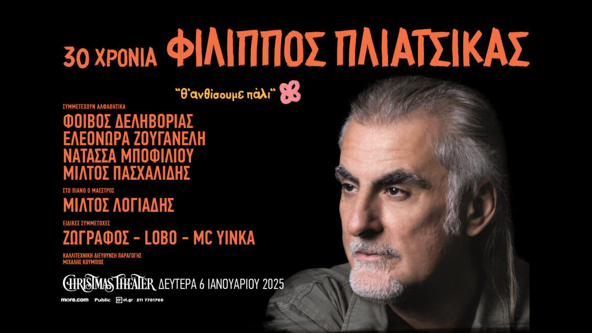 Με αφορμή την κυκλοφορία του άλμπουμ «Θ ’ανθίσουμε πάλι» ο Φίλιππος Πλιάτσικας έρχεται στο Christmas Theater για ένα ταξίδι, αναδρομή σε τραγούδια τριών δεκαετιών, μαζί με φωτεινούς συνοδοιπόρους που συνδέθηκαν μαζί του δισκογραφικά κι όχι μόνο.