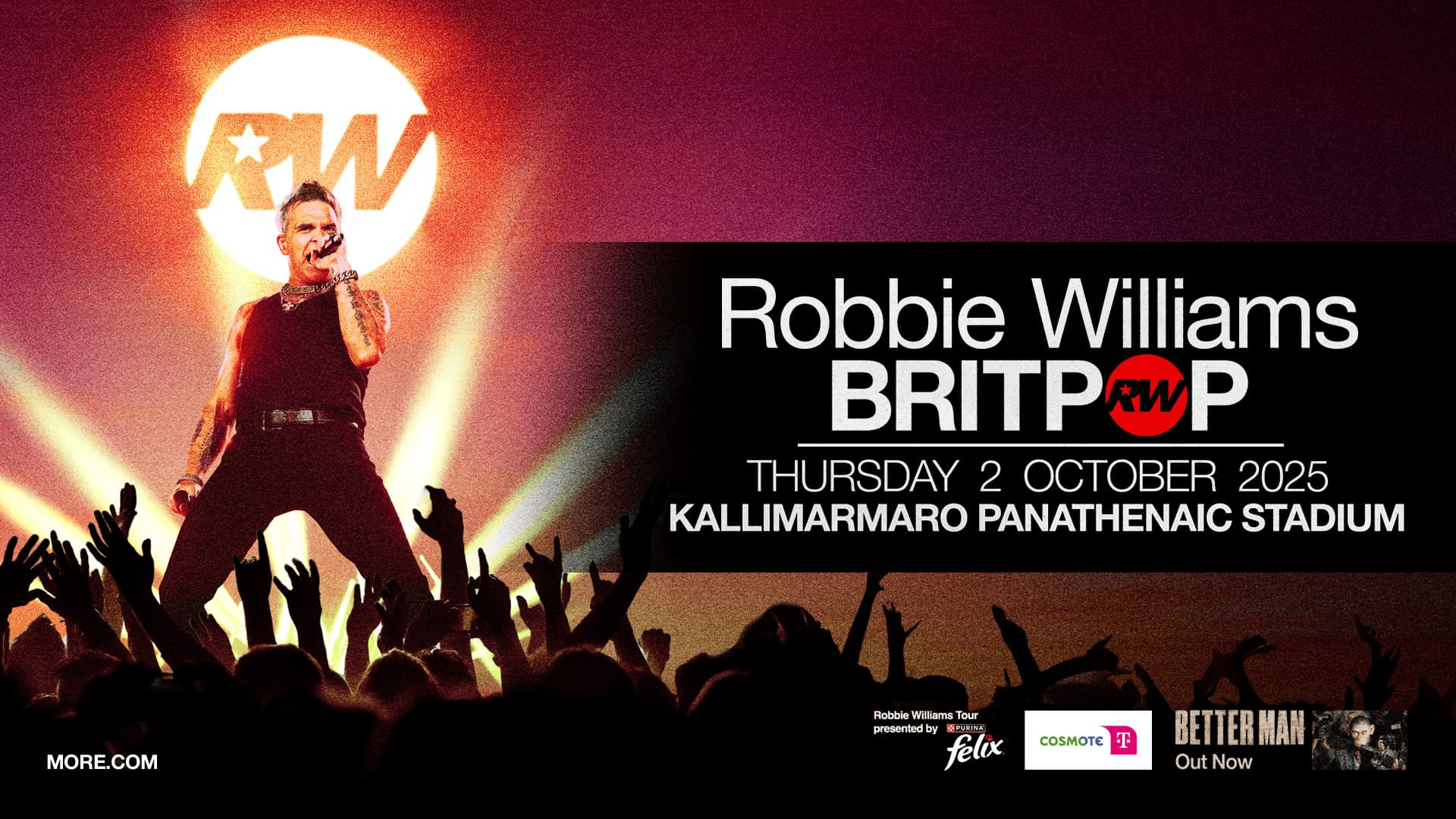 Στις 2 Οκτωβρίου στο Καλλιμάρμαρο θα απολαύσουμε την full παραγωγή του “Live 2025 Tour”, ένα πραγματικά εντυπωσιακό οπτικοακουστικό υπερθέαμα. Ο Robbie Williams θα ερμηνεύσει τραγούδια από ολόκληρη τη δισκογραφία του και όλες τις μεγάλες επιτυχίες του!